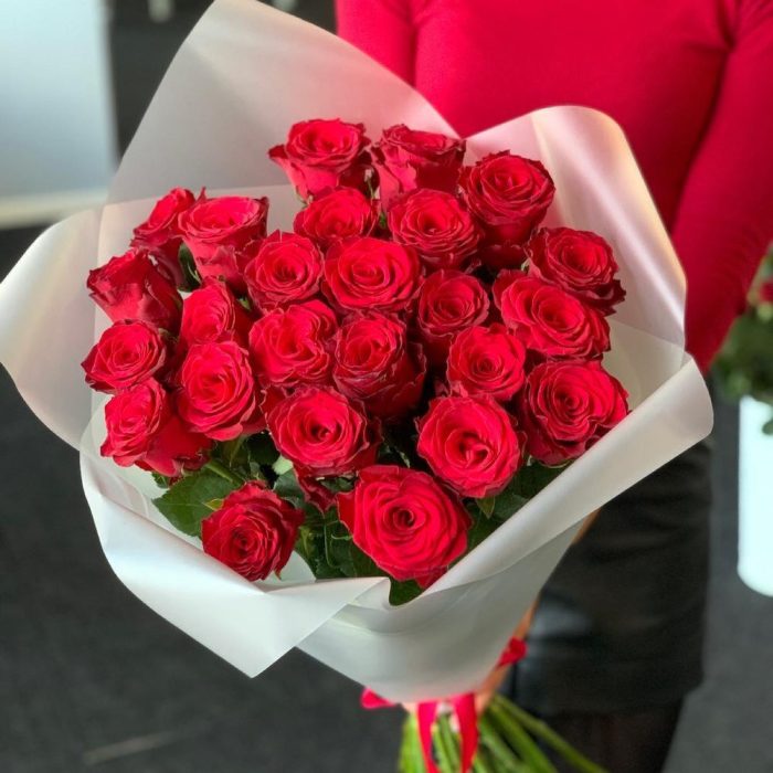 Метки: 21 роза, Красные розы, от 5000 руб, Роза 70 см