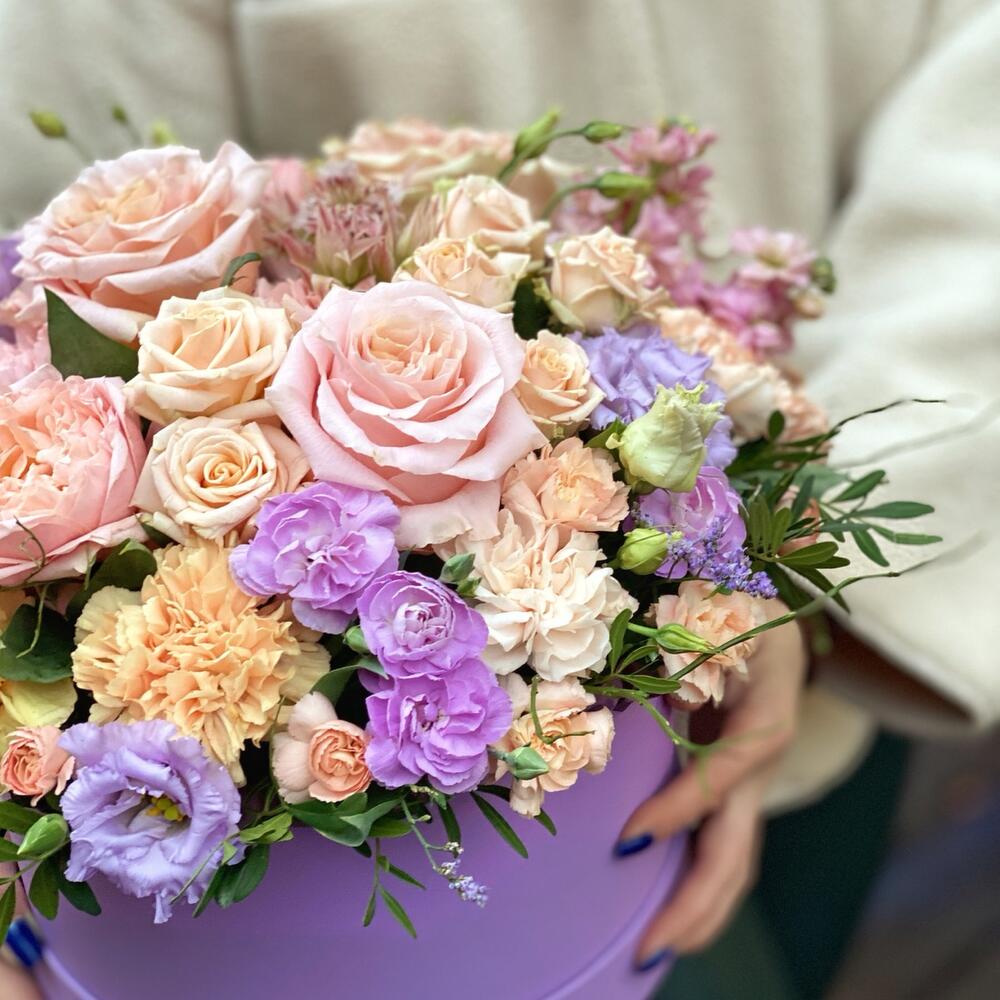 "В твоих глазах": нежная шляпная коробка с французскими розами