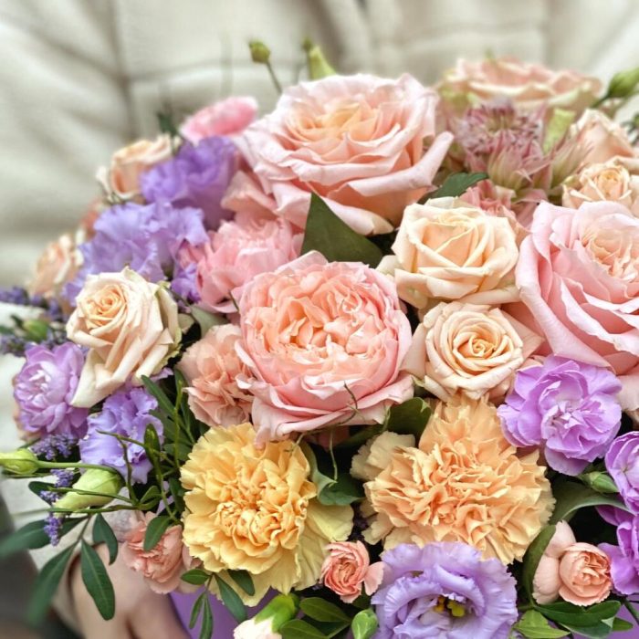 Гвоздики, Лизиантусы, Розы