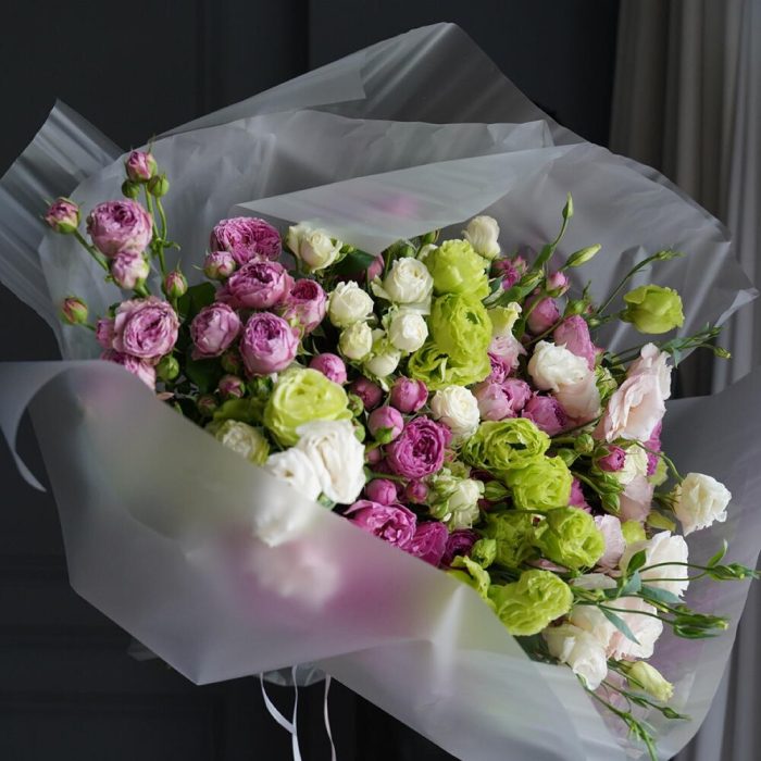 Гвоздики, Лизиантусы, Розы
