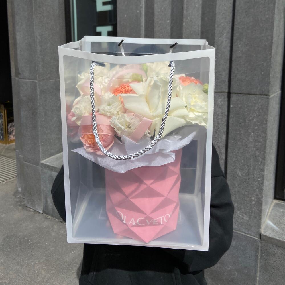 плая бланка – 3 шт.Лизиантус – 2 шт.Диантус – 3 шт.джульетта роза пионовидная – 1 шт.Коробка шляпная – 1 шт.Тишью – 2 шт.Лента атласная – 1 шт.пакет прозрачный для цветов – 1 шт.