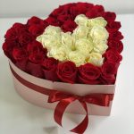 “Сладкое сердце ” – цветочная композиция с сладостями в коробке “Сердце”