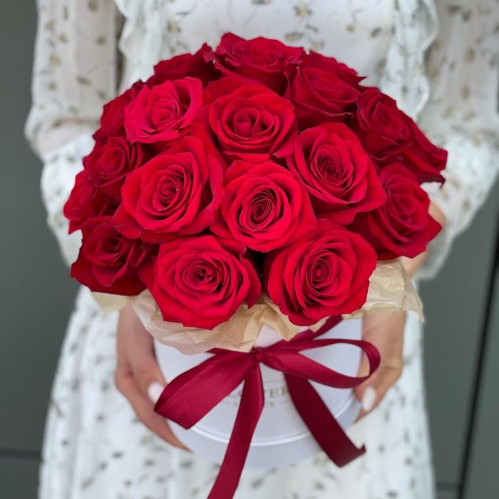 Коробка шляпная из 25 красных роз