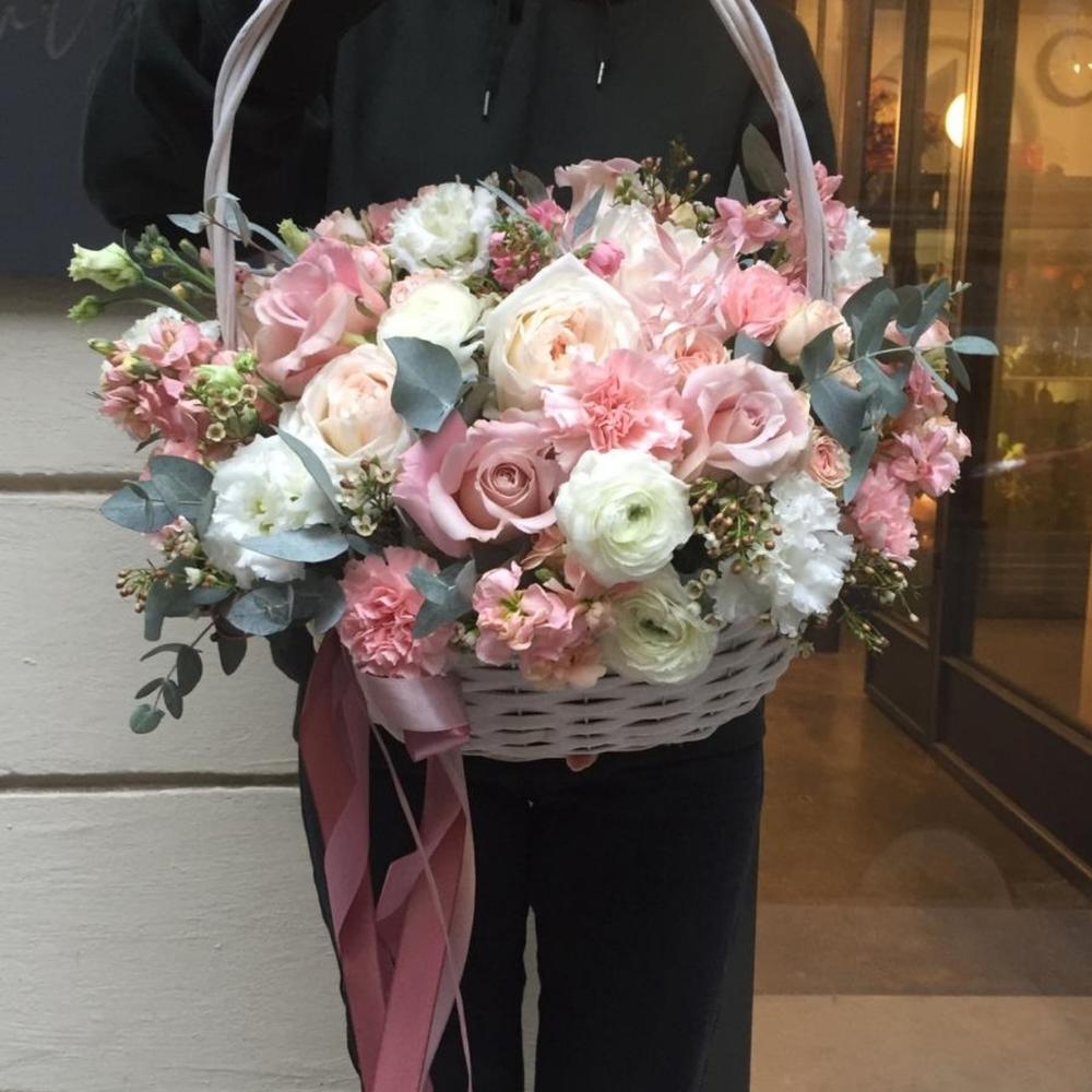 Метки: от 5000 руб, цветы в корзине
