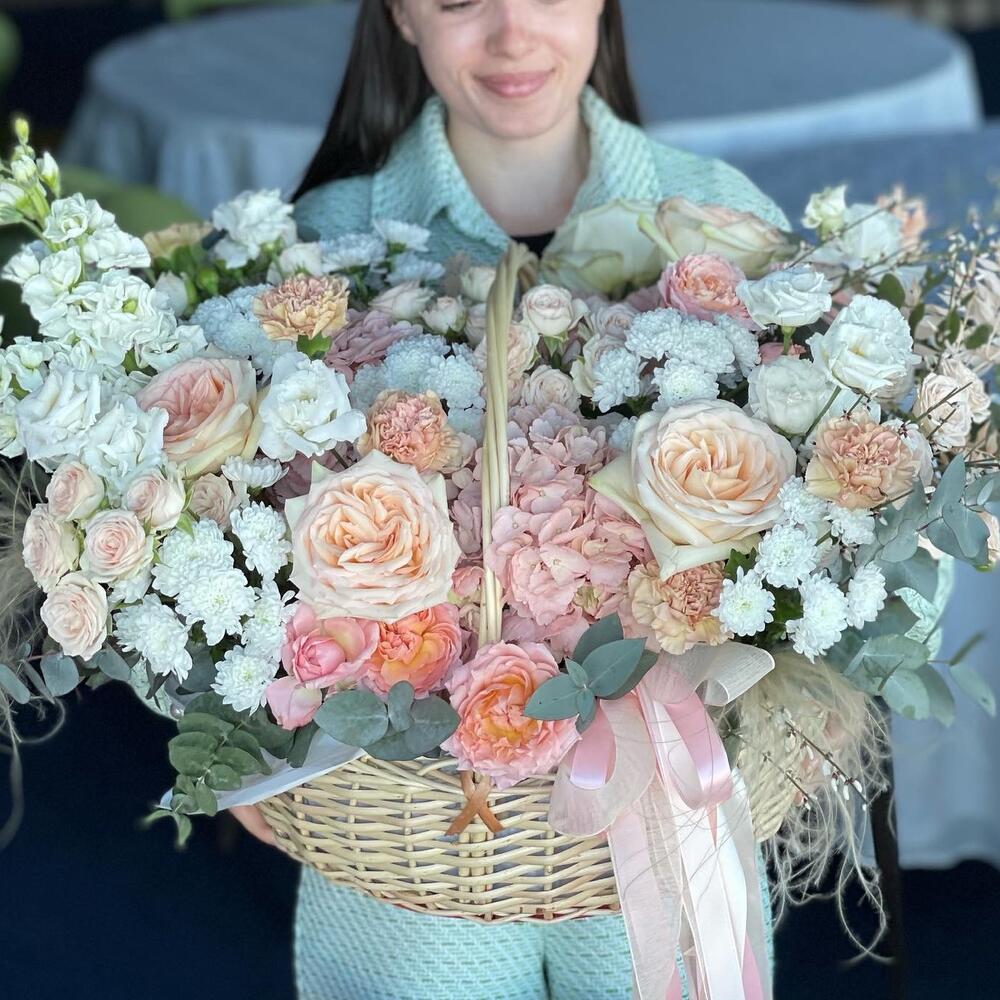 Корзина с розовыми розами