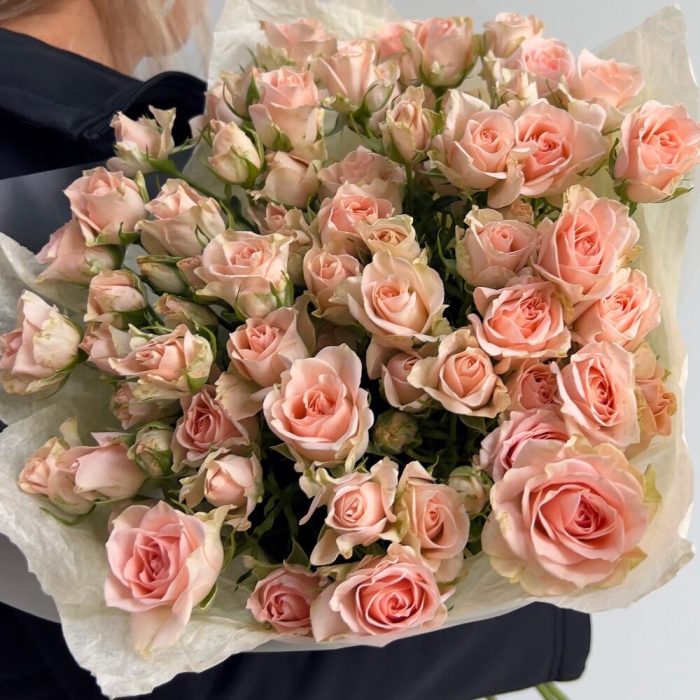 Кустовая роза – 15 шт.Тишью – 2 шт.Упаковка – 2 шт.