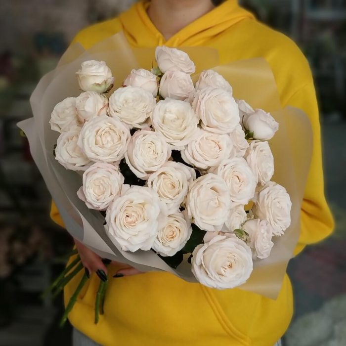 Оформление матовая пленка – 1 шт.кустовые розы – 9 шт.