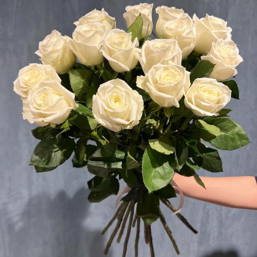 Роза белая эквадор 50 см – 15 шт.