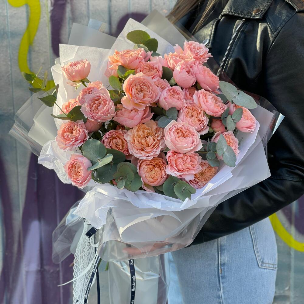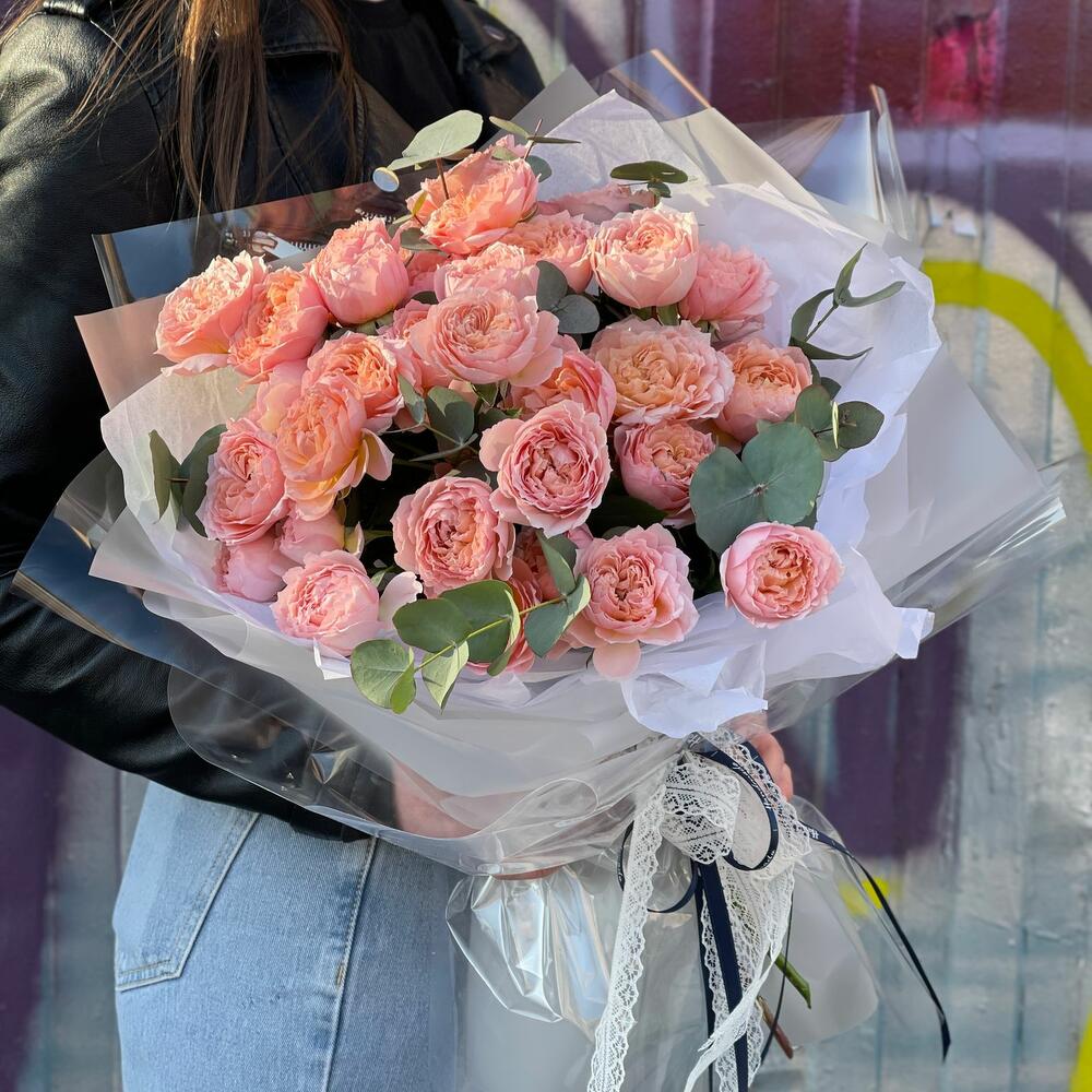 Гвоздики, Кустовые розы, Лизиантусы, Пионовидные розы, Розы