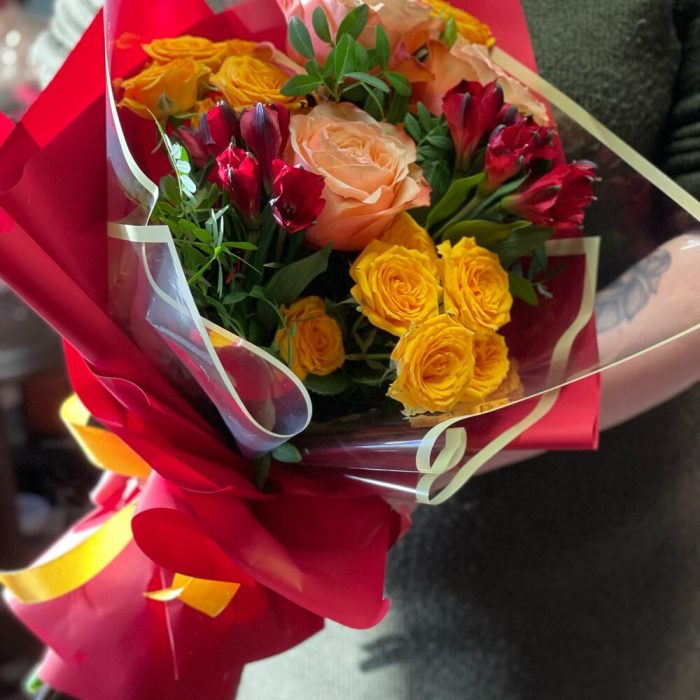 По ситуации , сорта цветов могут быть иными, чем на фото, но стилистика букета будет сохранена.
