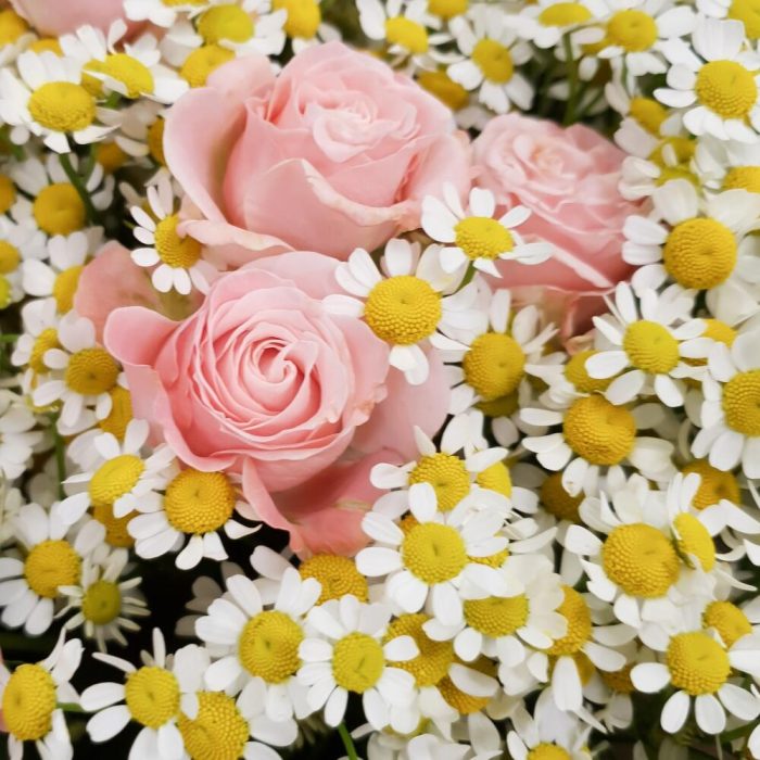 Ромашки с пионовидными розами