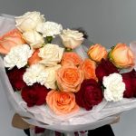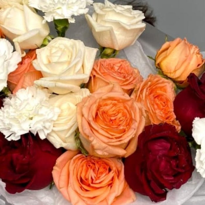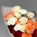 Гвоздики, Кустовые розы, Пионовидные розы, Розы