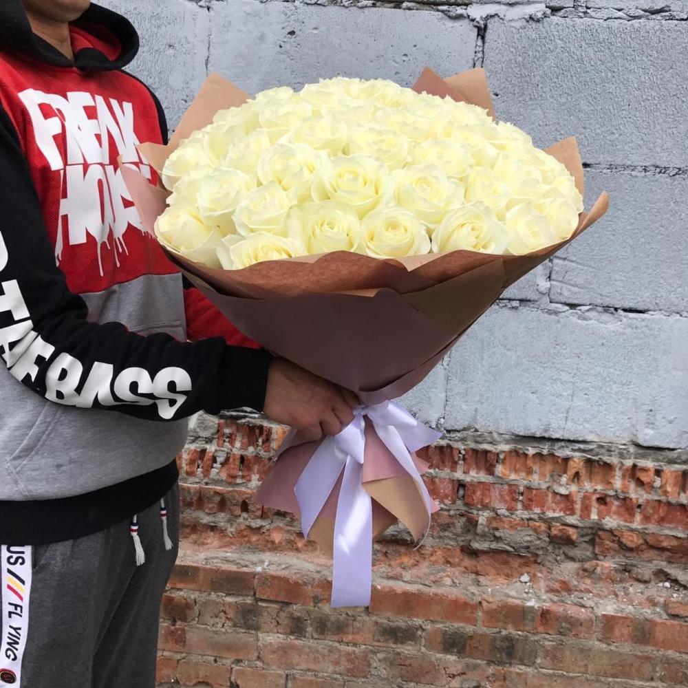 Лента атласная – 1 шт.Роза Эквадор 60 см – 51 шт.Упаковка крафт – 1 шт.