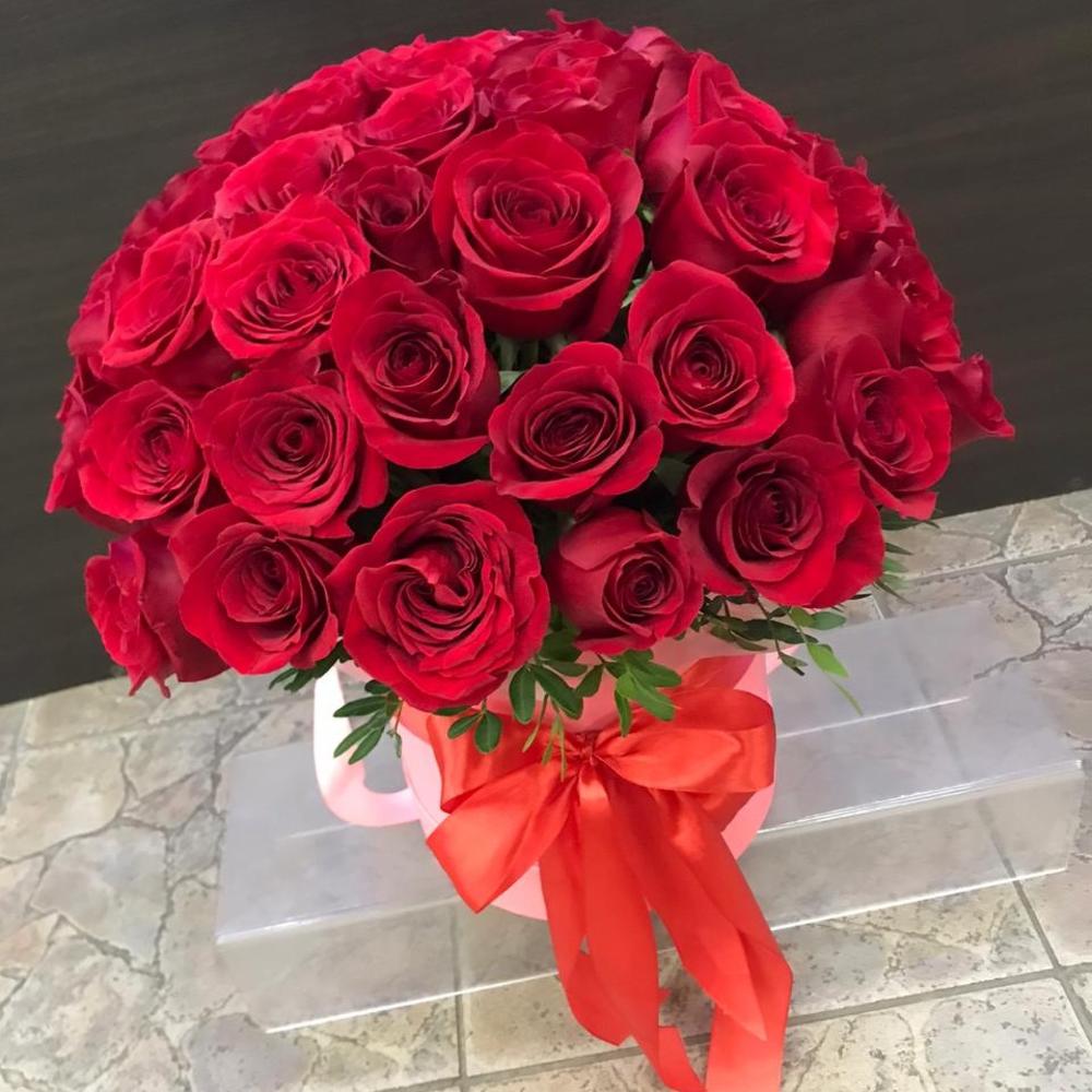 Шляпная коробка 55 алых роз