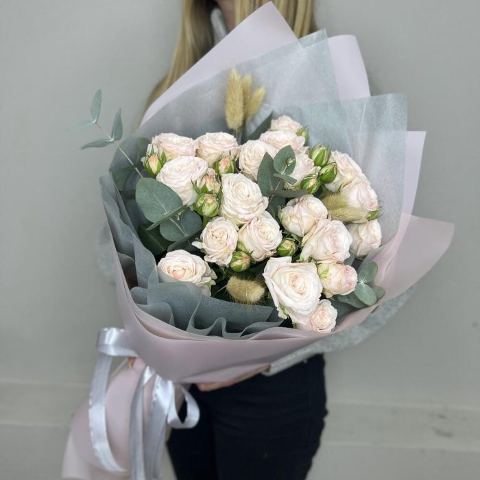 Ванильный капучино букет из пион видных роз